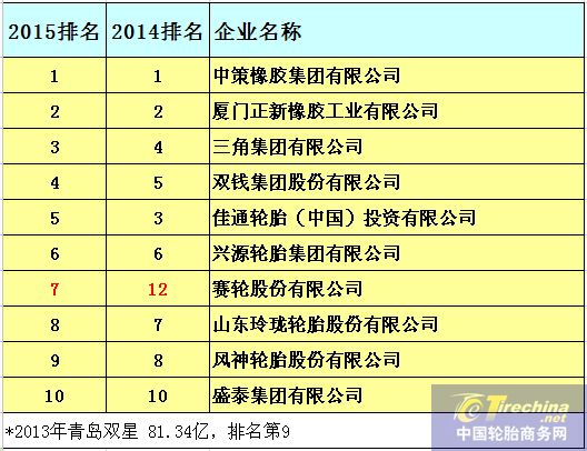 賽輪股份增長(zhǎng)最快,佳通下降最多,雙星輪胎淡出排行。